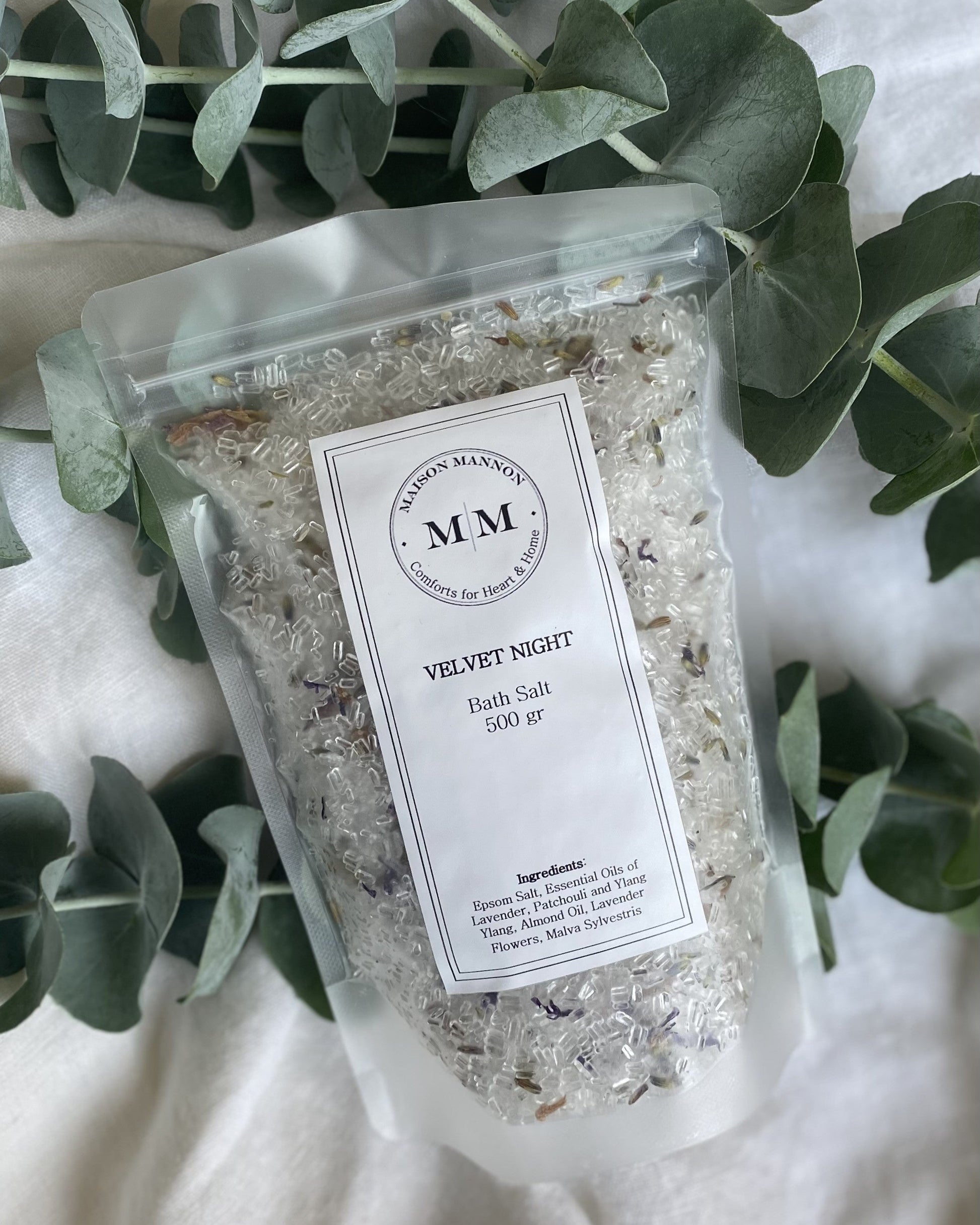 Epsom Salt, Essential Oils of Lavender, Patchouli and Ylang Ylang,