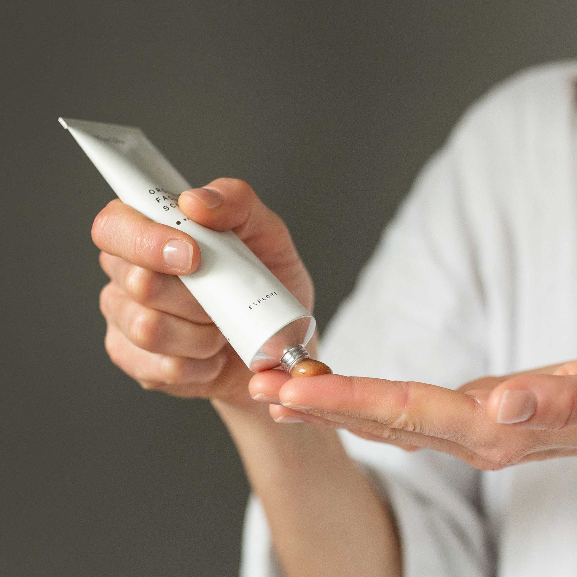 Gebaseerd op voedende biologische wei en fijngemalen abrikozenpitten. Verrijkt met een mix van biologische extracten van rozenbottel (ontstekingsremmend), kamille (antiseptisch) en goudsbloem (regenererend), ontstopt deze zachte biologische gezichtsscrub de poriën, verwijdert dode huidcellen en ondersteunt de celvernieuwing. Hyaluronzuur en biologische tarwekiemolie voeden en hydrateren de huid en zorgen voor een gladde en stralende teint.