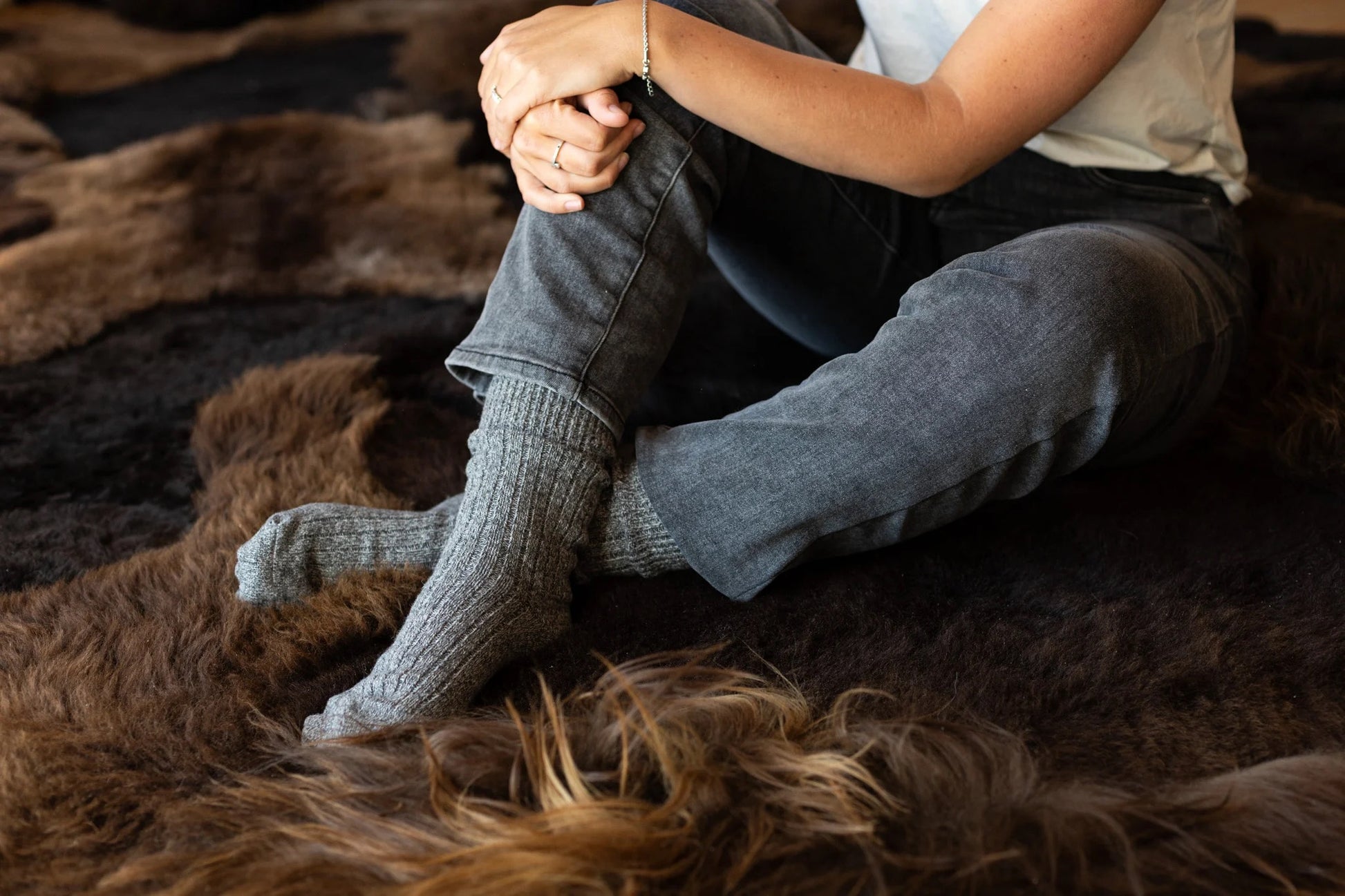 Deze heerlijk zachte, grijze wollen sokken zijn een onmisbare aanvulling op je wintergarderobe. Ze voelen comfortabel aan op de huid, houden je voeten heerlijk warm én absorberen vocht, zodat je voeten droog en fris blijven – de hele dag door.